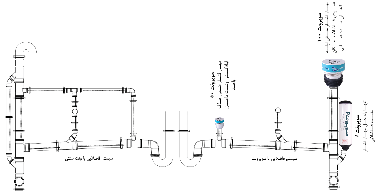 سوپردرین V مجهز به سوپرونت، راهحل جدیدی از سوپرپایپ است که بدون نیاز به لولهکشی متداول ونت در شبکه فاضلاب ساختمان، نه تنها باعث افزایش صحت و کارایی عملکرد ونت میشود، بلکه سرعت اجرای سیستم را نیز بالا میبرد. مهمتر آن که احتمال انتشار بوی نامطبوع به داخل ساختمان تقریبا وجود ندارد!